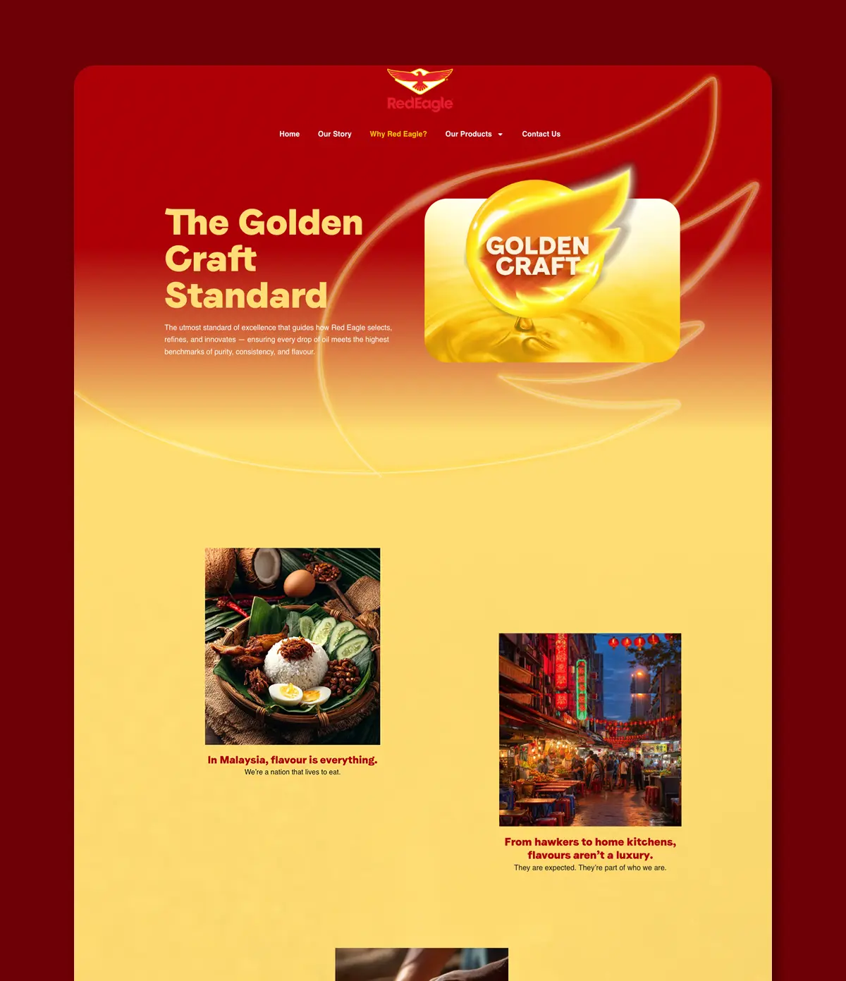 Red Eagle has long been a household name in Malaysia — a trusted legacy brand known for its quality cooking oil. Yet despite its strong market presence, it never had a standalone website. Its digital footprint existed mainly through retailers and distributors, leaving little space for the brand to express its own story and authority online.